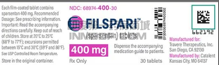 Sparsentan是一种非免疫抑制剂,单分子双重内皮素和血管紧张素II受体拮抗剂,对ETA受体和血管紧张素II亚型1受体(AT 1受体)具有高选择性,(FDA)加速批准Sparsentan用于降低IgA肾病成人患者的蛋白尿,这些患者具有较高的疾病进展风险。