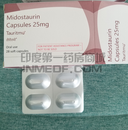 诺华为了打开在全球不同国家的市场,为了占领印度市场,将米哚妥林在印度上市后,也吸引了大批患者在印度第一药房进行印度直邮购买,印度米哚妥林同样也是胶囊药物;如下图所示;
