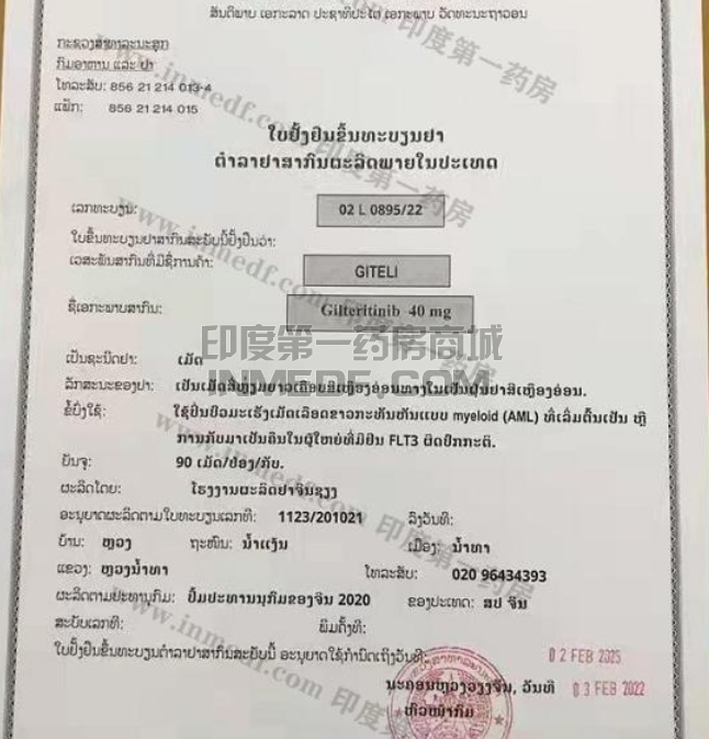 一个月,下图为吉列替尼审批文件,来自印度第一药房,仅供参考。