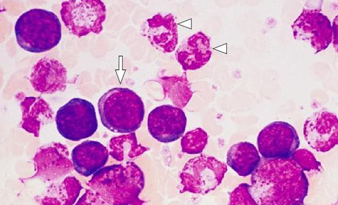 1.急性粒细胞白血病未分化型(M1)骨髓中原始细胞Ⅰ型(典型原粒细胞,胞质中无颗粒)+Ⅱ型(有原粒细胞特征,胞质量少,有少量细小颗粒)>90%,早幼粒细胞少,中性中幼粒细胞及以下阶段粒细胞不见或罕见,至少3%的原始细胞过氧化物酶或苏丹黑染色阳性,M1型占AML的10%~20%,年龄中位数40~50岁,仅1/3有肝,脾或淋结肿大,血象大多呈红细胞及血小板减少,半数白细胞增多,1/4白细胞减少,无特殊的细胞遗传学异常,通常对化疗敏感,预后较好。