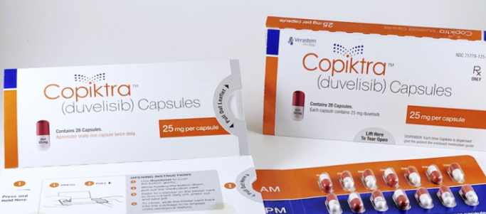 完全缓解或部分缓解后的剂量减少中位时间为5.6个月(n=25),中位持续时间为3.4个月。开始Copiktra治疗后,特别关注的不良事件(AESI)发生的中位时间从2.2-4.3个月不等。所有AESI消除的中位时间在4周以内。在3-6个月后,经历不良事件的患者比例岁时间的推移呈现稳定或下降(0-3个月:64%;3-6个月:63%;6-9个月:47%;9-12个月:52%),很少导致Copiktra停药(≤10%)。这些研究结果支持剂量中断或剂量减少可能有助于管理Copiktra治疗患者的TEAE,并且剂量中断超过1-2周或更长时间似乎不会显著影响Copiktra治疗缓解或PFS。