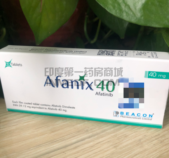 阿法替尼(是第二代表皮生长因子受体(EGFR)-酪氨酸激酶抑制剂(TKI)之一,是一种口服不可逆的ErbB家族阻断剂,可与EGFR的激酶结构域共价结合。EGFR(HER)2和4,在非小细胞肺癌(NSCLC)中具有临床疗效,阿法替尼在孟加拉以及印度均有合法仿制药的上市,不过药物包装是有一定区别的。