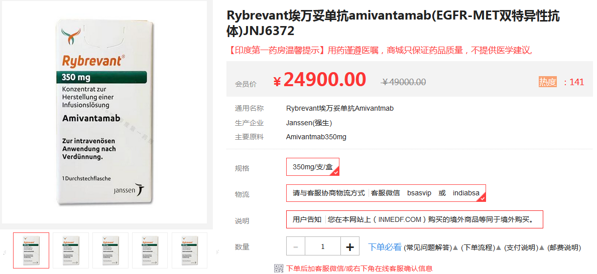 中文名为埃万妥单抗,Rybrevant在印度第一药房的具体介绍如下图所示;
