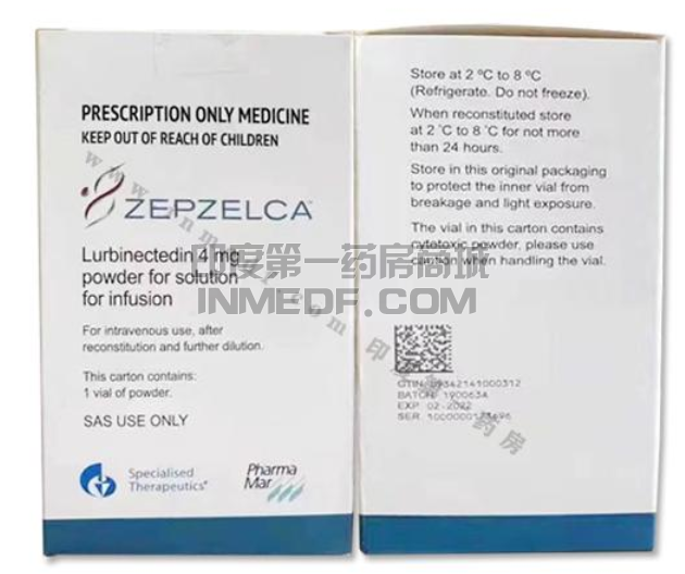 Lurbinectedin鲁比卡丁于2020年6月获得美国食品和药物管理局 (FDA) 的批准,用于治疗在铂类化疗期间或之后出现疾病进展的转移性小细胞肺癌成年患者,欧版鲁比卡丁每一支同样也是为4mg,与在美国上市的为同一个药企,只是上市国家不同。