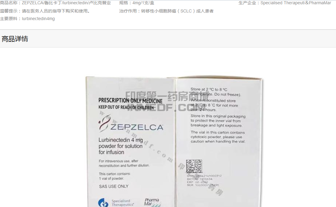 Lurbinectedin鲁比卡丁是一种靶向活性转录的新药物,原研药上市后价格高达数十万元左右,除了这一版本的原研药可以购买外,欧版鲁比卡丁原研药同样可以进行购买,在印度第一药房的售价在49500元左右,也是现在最为划算的原研药版本,Specialised Therapeuti&PharmaMar共同开发。