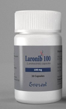 拉罗替尼(ARRY470,LOXO101,Vitrakvi)是TRKA,TRKB和TRKC的高效抑制剂,在I/II期临床试验中已证明其对TRK融合阳性癌症具有明显的抗肿瘤活性,并具有良好的副作用。2018年11月,美国食品药品监督管理局(FDA)加快批准拉罗替尼用于患有携带NTRK基因融合但无已知获得性耐药突变的实体瘤的成年和小儿患者。