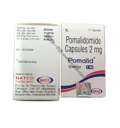 印度目前只有泊马度胺仿制药已经推出,由Natco(印度)进行生产销售,每盒规格2mg-21胶囊/瓶(盒),也有不少患者用来单独使用,药物指导需要在医生允许下进行,药品信息请进入: