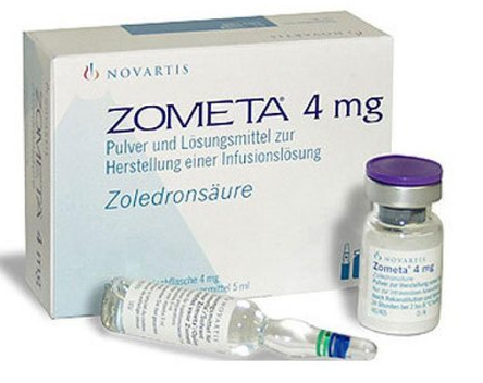 唑来膦酸(艾瑞宁)是第一种(IV)双膦酸盐,在多种肿瘤类型(如乳腺癌,前列腺癌,肾细胞癌和肺癌以及多发性骨髓瘤)中显示出治疗骨并发症的功效。