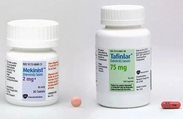 将达拉非尼与曲美替尼同时使用可能会增加患某种类型皮肤癌的风险。向您的医生询问特定风险。如果发现任何新的皮肤症状,如发红,疣,无法愈合的疮或大小或颜色改变的痣,请告诉医生。