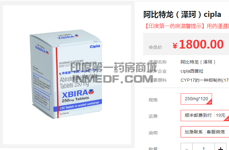 印度第一药房这种平台进行购买,印度直邮发到国内,而国内药店可以购买到的是,西安杨森制药仿制版的阿比特龙,价格在