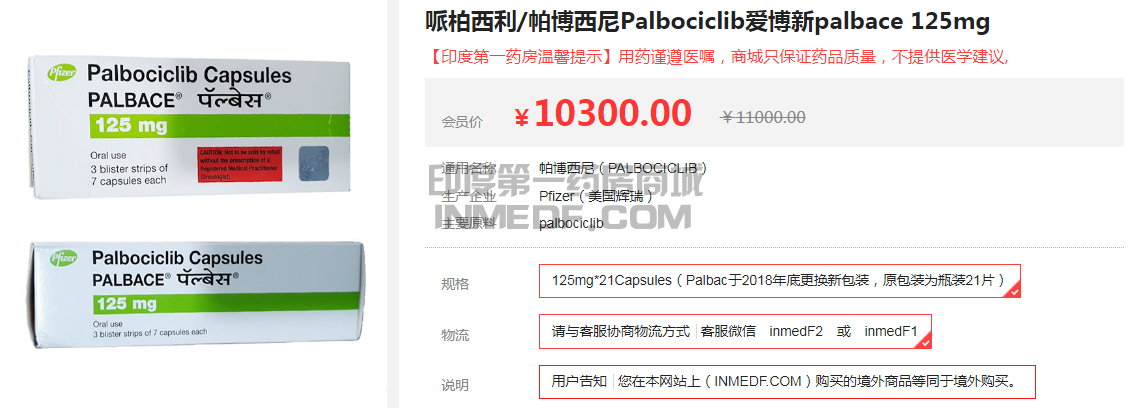 帕博西尼是由由辉瑞(Pfizer)公司研发的突破性乳腺癌靶向药物,辉瑞将帕博西尼出口到了印度,在印度上市的帕博西尼是全球性价比最高的版本,因为印度国情原因,定价没有其他国家那么高,如何才能买到靠谱的帕博西尼呢?帕博西尼可以通过印度直邮进行购买,