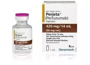 2018年12月18日,罗氏制药宣布其创新的乳腺癌靶向药物帕妥珠单抗(英文商品名:Perjeta)已获中国国家药品监督管理局批准,将曲妥珠单抗与化疗联合用于辅助治疗HER2阳性且复发风险高的早期乳腺癌患者。帕妥珠单抗和曲妥珠单抗(赫赛汀)的双靶点治疗可将HER2阳性且复发风险高的早期乳腺癌患者的复发或死亡风险降低25%。目前,这种创新的治疗方案已在国内外许多指南和专家共识中得到推荐。
