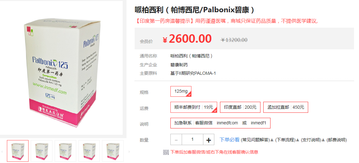 仿制药效果怎么样?碧康药企仿制的帕博西尼(爱博新)在哪里能买到,碧康生产的仿制药,是近年来的热门,不仅仅是因为碧康在全球知名度高,大部分原因是因为价格低廉,让吃不起靶向药的患者,吃的起靶向药,孟加拉碧康都是通过了ISO质量认证体系、生产符合欧盟的认证。这也是碧康药厂屹立不倒的原因。现在各大网上都有碧康的药品售卖,但是一定要擦亮眼睛,要选择像印度第一药房这种合法合规的海外平台进行购买,详细信息可以点击首页与客服详细沟通。