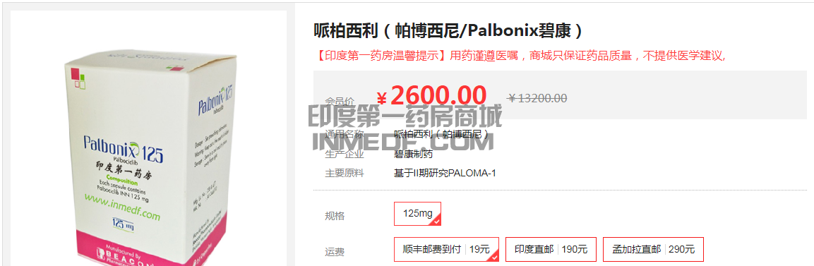 现在孟加拉直邮已开通,在印度第一药房购买帕博西尼,可直接从碧康厂家直发到客户手中,物流可追踪,吃药是更加放心的。