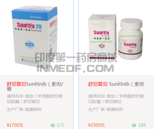 而印度,先前批准过,但已经停产,目前,印度是没有舒尼替尼购买的,如果有,一定需要注意其来源,药企,查看是否是药监局合法批准后上市的药物。