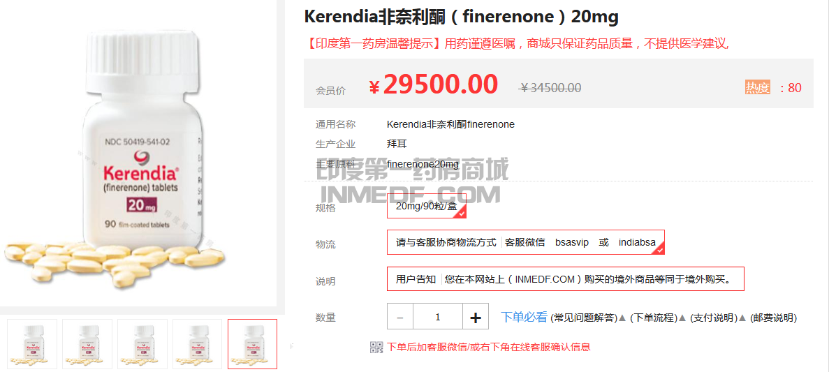 Finerenone非奈利酮是一种新型的非甾体选择性MR拮抗剂 (MRA),拜耳原研药版非奈利酮一盒为90粒装,详情也可以参考下面图片;