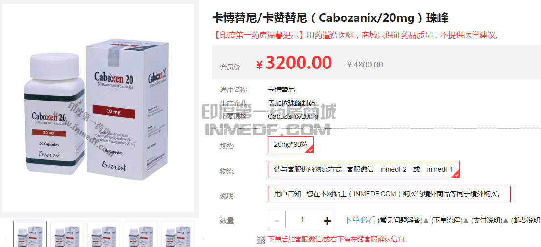 卡博替尼是属于长时间服用的药物,一定要选对版本,比如,孟加拉珠峰制药生产的卡博替尼,每盒