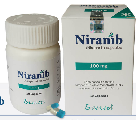尼拉帕尼(Niraparib)是一种口服PARP1/2抑制剂,用于复发性上皮性卵巢癌、输卵管癌或原发性腹膜癌的维持治疗。在对一线铂类化疗有反应的晚期卵巢癌妇女中,使用PARP抑制剂尼拉帕尼(nilapani)的维持治疗显著降低了疾病进展的总体风险。