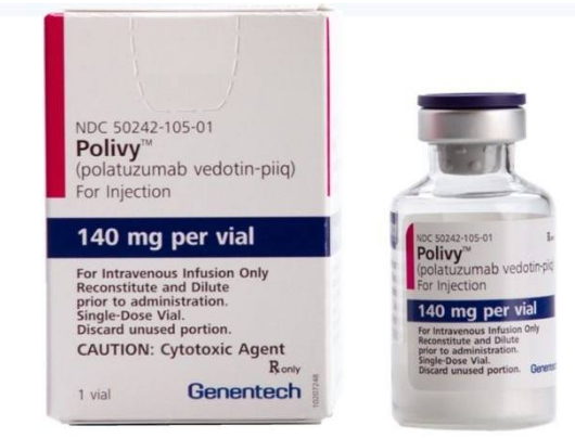 POLIVY是一种新颖的靶向免疫疗法,将抗体与化疗药物结合在一起。该抗体与仅在B细胞上发现的称为CD79b的特定蛋白质结合。一旦抗体与B细胞结合,化疗药物就会释放到癌细胞中。POLIVY联合苯达莫司汀和利妥昔单抗产品可用于治疗经过两次或更多次先前治疗的复发性或难治性弥漫性大B细胞淋巴瘤患者。
