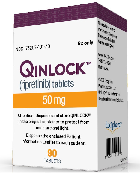 瑞普替尼(Qinlock)被批准用于治疗晚期胃肠道间质瘤(GIST)的患者,这些患者先前已接受3种或更多种激酶抑制剂(包括Qinlock)的治疗。瑞普替尼是一种广谱KIT和PDGFRα抑制剂。已知Kit和PDGFRα的突变会导致GIST的生长。
