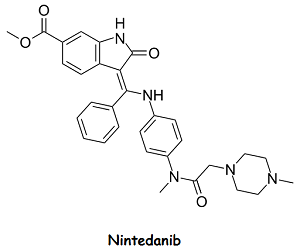 尼达尼布是一款能够进行多种酪氨酸激酶受体(RTKs)抑制剂,尼达尼布能够竞争性结合这类受体的ATP结合位点从而阻滞细胞内信号通路。许多信号通路对间质性肺纤维化形成中纤维...